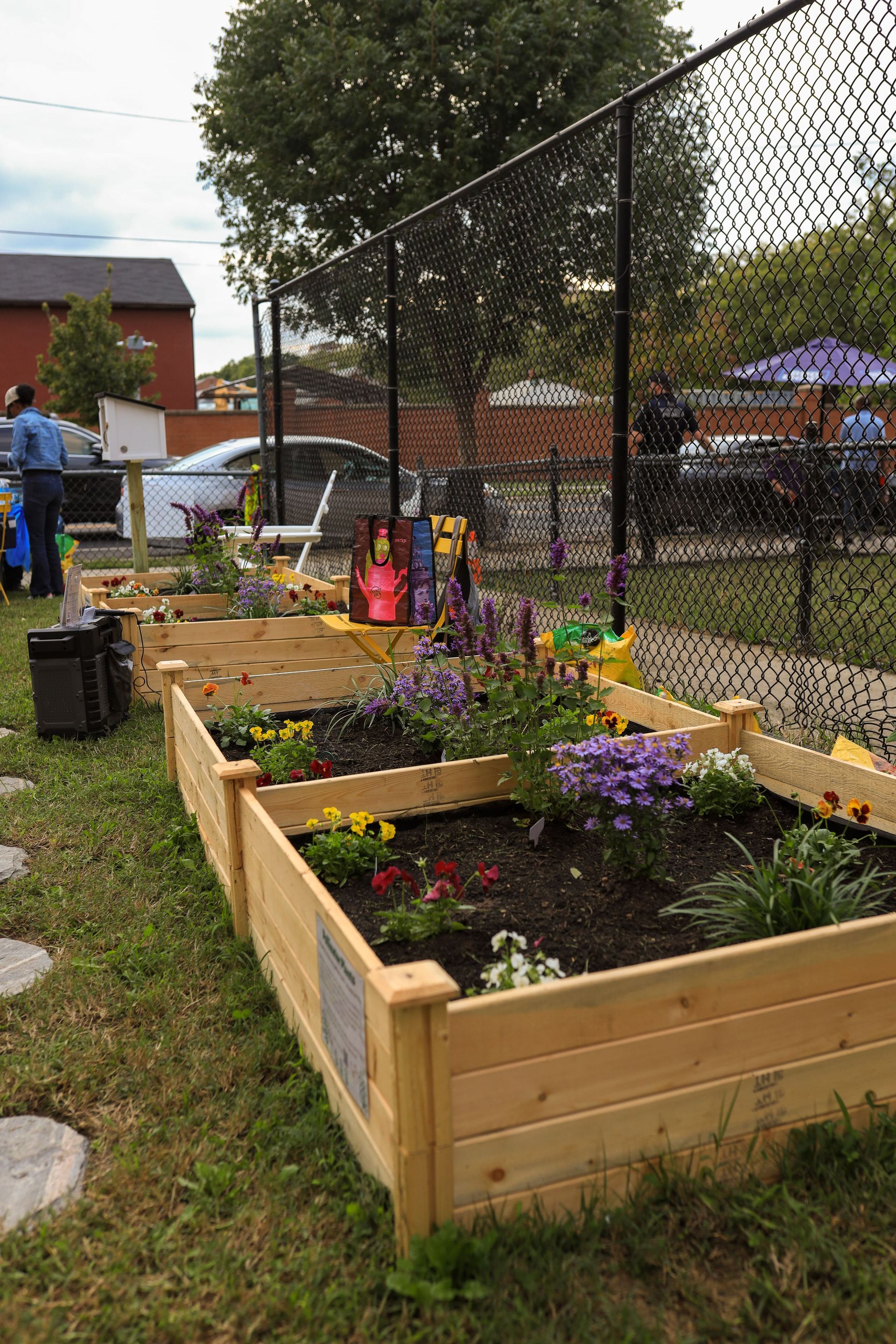 Each garden features native flowers, herb gardens that residents can harvest for personal use, public art installations, seating, and enhanced community amenities. The gardens serve as safe spaces for passive reflection and remembrance as well as programmed activities including youth community service, recreational events, and resource distribution.